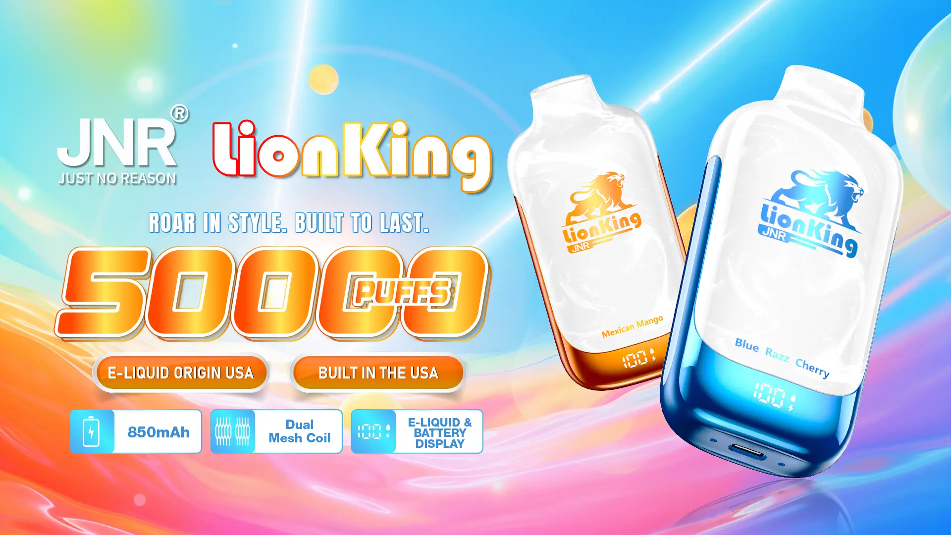 Its compact and portable design makes the Lion King easy to carry while still housing a high-capacity rechargeable battery, ideal for both daily use and extended sessions. With 20+ popular flavors—including fruity, icy, and mixed blends—the JNR Lion King 50000 Puff meets the preferences of both retail customers and wholesale buyers.